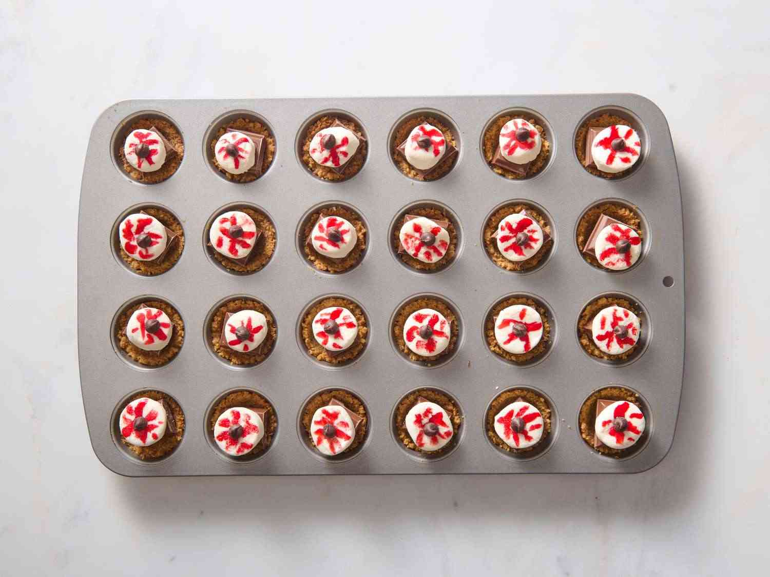 - Step 2:Stir graham cracker crumbs, butter, and confectioners' sugar together in a bowl; mix until evenly moistened and press into an ungreased mini-muffin pan to form shallow cups. Allrecipes/Julia Hartbeck