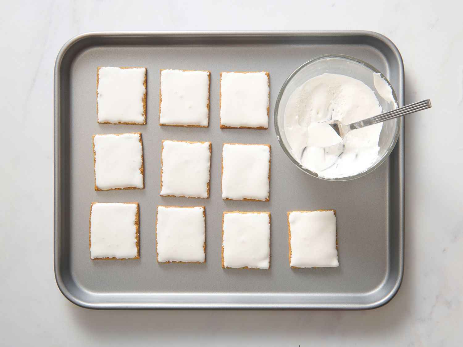 - Step 2:Spread about 1 tablespoon marshmallow fluff evenly onto 1 side of each graham cracker square. Allrecipes/Julia Hartbeck
